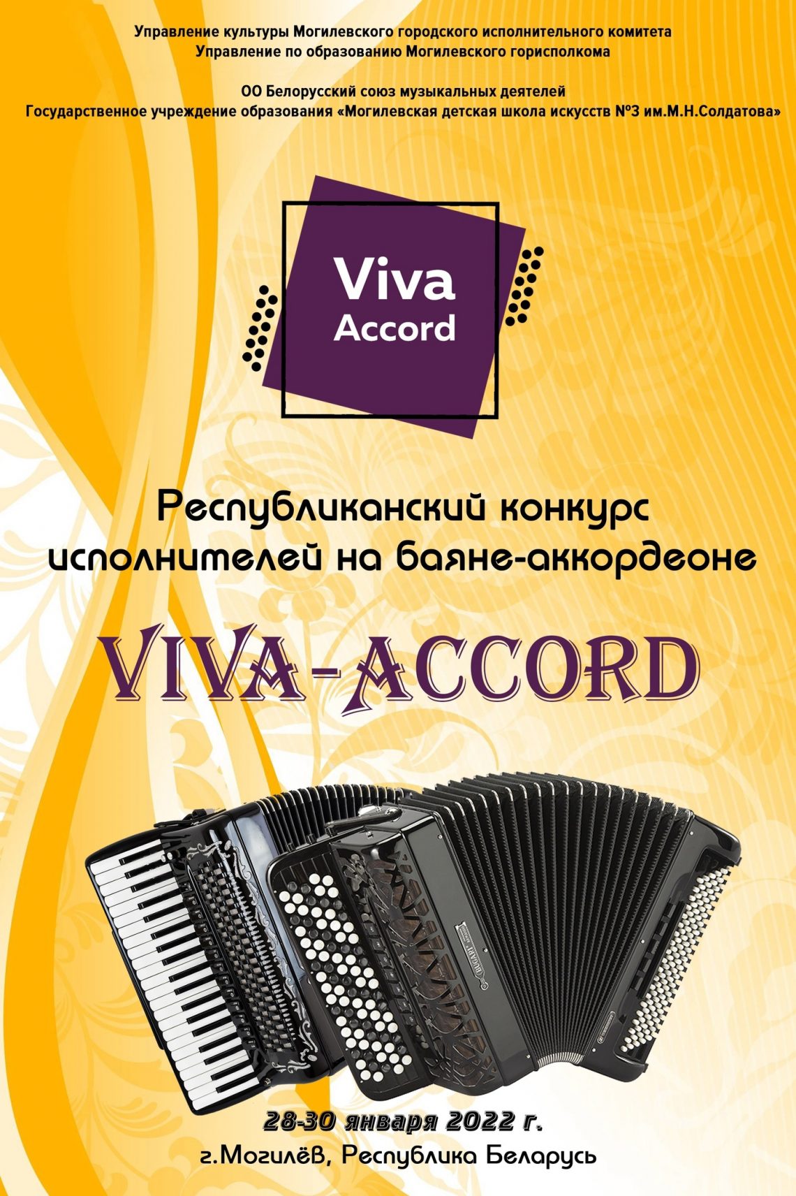 Дорогие ребята! Уважаемые коллеги! Мы приглашаем вас к участию во II Республиканском конкурсе исполнителей на баяне – аккордеоне «Viva accord», который будет проходить 28-30 января 2022 г. в дистанционной форме. 10.01.2022 /