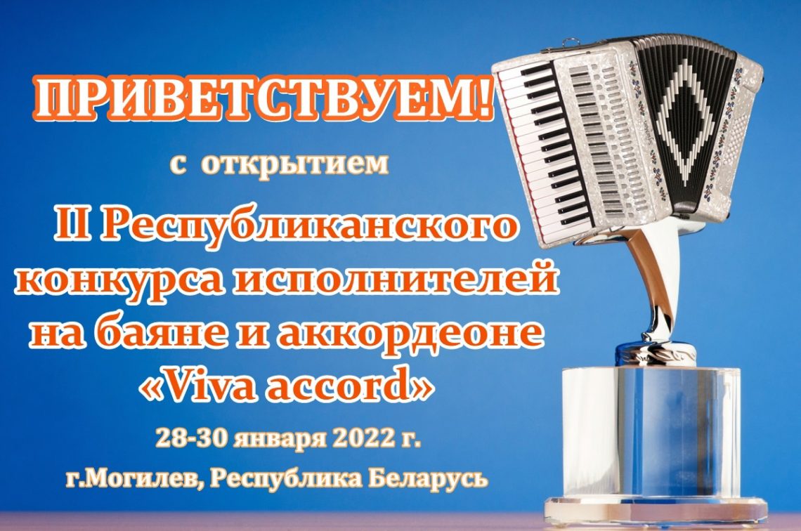 Уважаемые участники конкурса! От всей души приветствуем всех с открытием II Республиканского конкурса исполнителей на баяне – аккордеоне «Viva accord» 27.01.2022 /