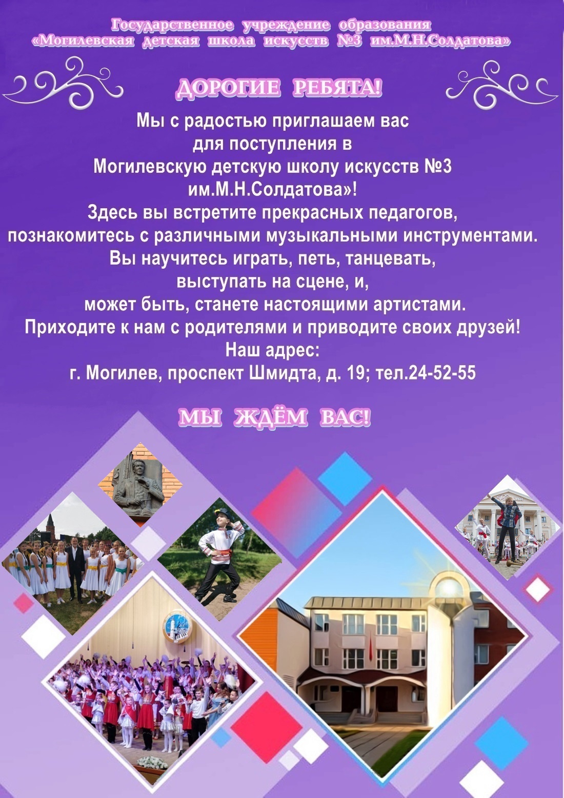 «Могилевская детская школа искусств №3 им.М.Н.Солдатова» объявляет набор учащихся на 2022-2023 учебный год по всем направлениям деятельности на инструментальное, хоровое и хореографическое отделения. 20.04.2022 /
