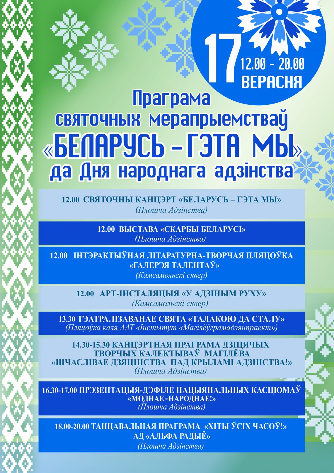 Неделя единства в рамках празднования государственного праздника — Дня народного единства — пройдет в Могилеве с 12 по 17 сентября. 12.09.2022 /