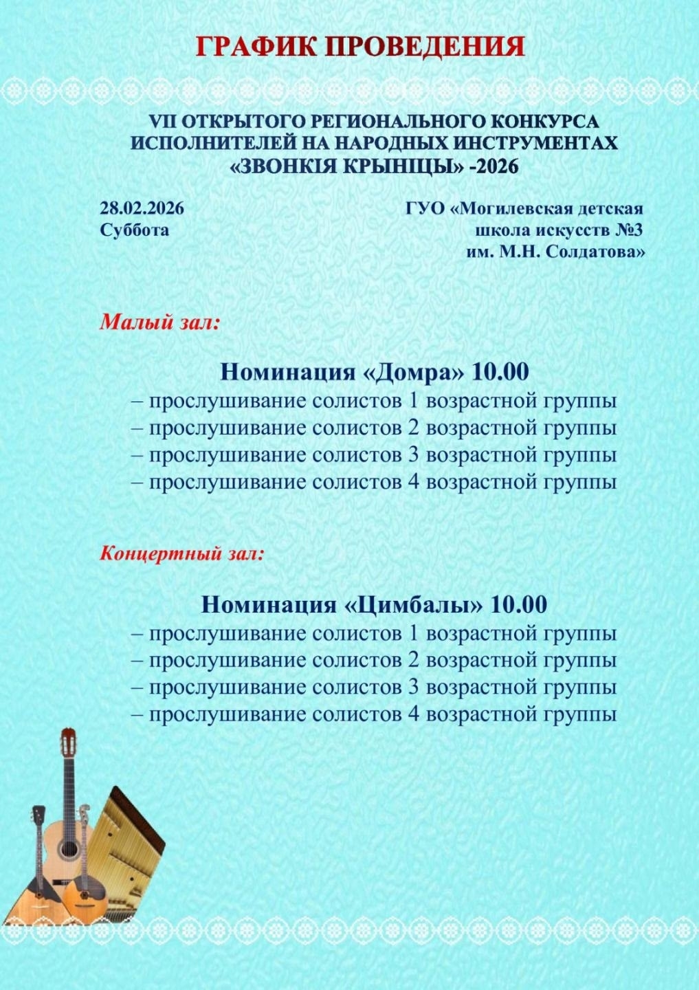 ГУО «Могилевская детская школа искусств № 3 им. М. Н. Солдатова» ждёт вас на открытом региональном конкурсе «Звонкія крыніцы» — яркой площадке для раскрытия таланта и обмена творческим опытом!