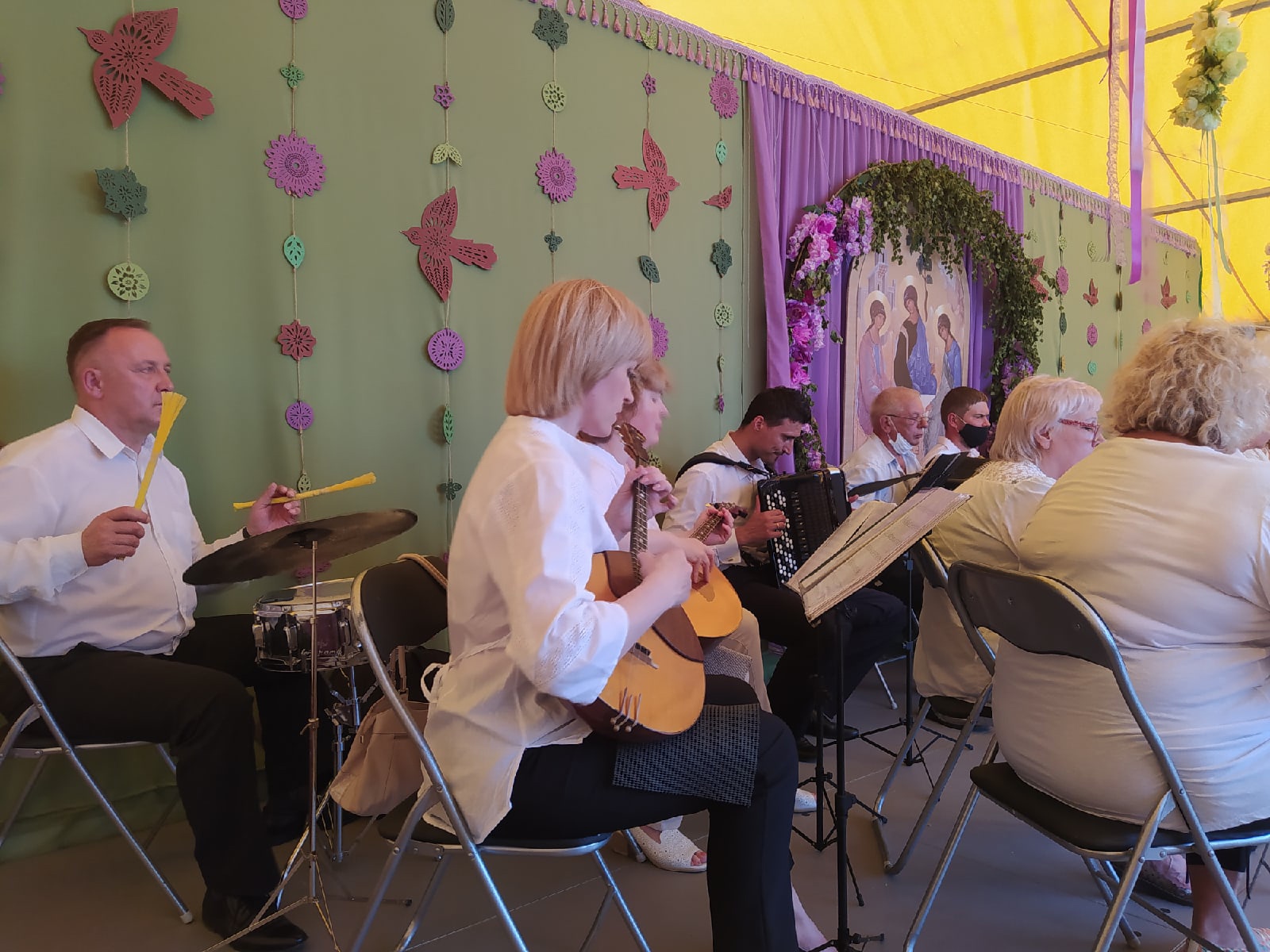 Весь воскресный день на концертной площадке звучала музыка. Свое творчество могилевчанам подарили учителя и воспитанники Могилевской детской школы искусств №3 им.М.Н. Солдатова: народный оркестр народных инструментов(рук.Щербо В.Г.), образцовый вокальный ансамбль “Мелодия”(рук.Бельская А.А.), вокальный ансамбль учителей(Лапшинова Я.В.,Василевская М.А.,Скоробогатова Я.И.),солисты: Протасевич Анастасия,Казимирова Римма,Будькова Евгения,Рычкова Н.В.,Правашинская Д.Д.,Бельская А.А.,Жаббарова А.Ж.,Власова Р.И., Забелов К.М.