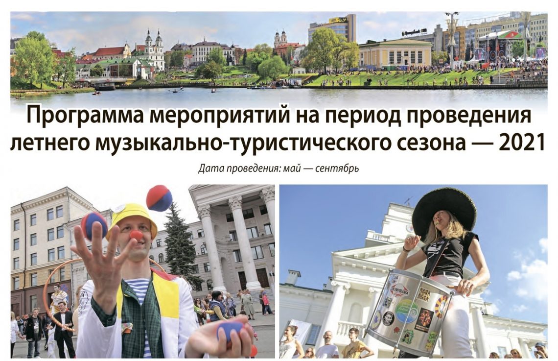 Программа летнего музыкально-туристического сезона с мая по сентябрь 2021 г. в историческом центре Минска.