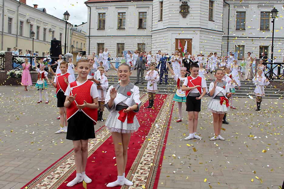 Праздничные яркие мероприятия проходят в г.Могилеве. В рамках празднования Дня города и Дня Независимости, возле городской Ратуши, состоялась ежегодная торжественная церемония вручения специальной премии «Достижение» Могилевского горисполкома. После вручения премии на открытой площадке у Ратуши для гостей мероприятия состоялся праздничный концерт “Мы единое целое”. В концертной программе приняли участие детские творческие коллективы Могилевской детской школы искусств №3 им.М.Н.Солдатова: хореографический коллектив “Забавушки”, рук.Новикова Галина Геннадьевна и хореографический коллектив “Славница”, рук.Федоренко Светлана Анатольевна. Мы поздравляем всех ребят и уважаемых руководителей коллективов с ярким выступлением на торжественном городском мероприятии.