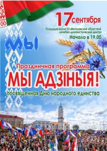 17 СЕНТЯБРЯ В 19:00 на площади возле УЗ «Могилевский областной лечебно-диагностический центр» пройдет праздничный концерт “МЫ АДЗIНЫЯ”, посвященный Дню народного единства.